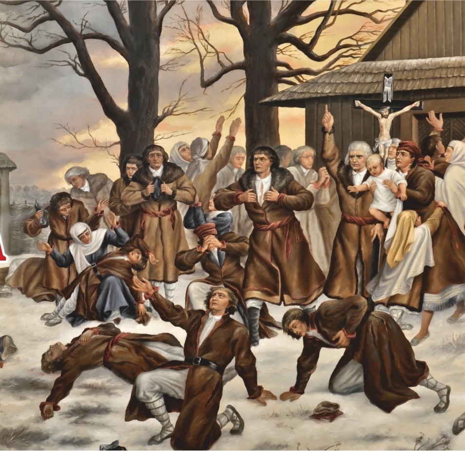 Do wsi 24 stycznia 1874 r. przybyły dwa oddziały carskiego wojska, głównie Kozacy, którzy działając w imieniu imperatora rosyjskiego dokonali masakry. Obrońcy świątyni, widząc, że wojsko ma nakaz zabijania stawiających opór, uklękli na cmentarzu świątynnym i umierali z modlitwą na ustach, śpiewając "Święty Boże" i "Kto się w opiekę". Nie złorzeczyli prześladowcom, bo jak mówili: "słodko jest umierać za wiarę". Kozacy zabili 13 miejscowych unickich parafian, a ranili około 180 osób (w tym kobiety i dzieci), bowiem nie chcieli oni odstąpić od swojej świątyni oraz bronili swojego katolicyzmu i jedności z Papieżem. Zostali wtedy zabici: Wincenty Lewoniuk (25 lat, żonaty), Daniel Karmasz (lat 48, żonaty), Łukasz Bojko (lat 22, kawaler), Bartłomiej Osypiuk (lat 30, żonaty), Onufry Wasyluk (lat 21, żonaty), Filip Geryluk (lat 44, żonaty), Konstanty Bojko (lat 49, żonaty), Anicet Hryciuk (lat 19, kawaler), Ignacy Frańczuk (lat 50, żonaty), Jan Andrzejuk (lat 26, żonaty), Konstanty Łukaszuk (lat 45, żonaty), Maksym Hawryluk (lat 34, żonaty), Michał Wawryszuk (lat 21, żonaty).