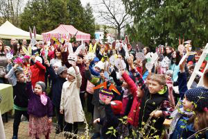 "Palmowa w Powsinie". W tym roku kiermasz odbył się 9 kwietnia, gdyż w ten właśnie dzień przypadła niedziela palmowa. Największym wyzwaniem jest dla nas zawsze zebranie 500 (!!!) fantów na loterię, w której, jak wszyscy bywalcy naszych kiermaszów wiedzą, każdy los wygrywa. Choć czasem ogarnia nas zwątpienie czy nam się uda, z pomocą Bożą i dobrych ludzi jak dotąd się udaje. Tegoroczna loteria cieszyła się ogromnym powodzeniem, wykupione zostały wszystkie losy, a dla ostatnich chętnych nawet ich zabrakło. Podobnie rzecz się miała z domowymi ciastami. Upieczone przez Powsinian, grupę "+30", siostry Felicjanki i Caritas słodkie wspaniałości znikały ze stołów nieomal w mgnieniu oka. Po głównej fali odwiedzających tj. po mszy świętej dla dzieci, kolejni amatorzy słodyczy musieli się obejść smakiem. Chyba, że dopisało im szczęście i znaleźli jedno z ukrytych w całym ogrodzie 80 kolorowych jajek i zajączków wypełnionych słodyczami. To była, obok loterii, kolejna atrakcja naszego kiermaszu i towarzyszyła kulminacyjnemu punktowi całego wydarzenia, czyli rozstrzygnięciu konkursu dla dzieci. Tym razem, w ramach zadania konkursowego, dzieci otrzymały maski wielkanocnego zająca, ale bez uszu. Należało doprawić zającowi uszy i ozdobić maskę. Jak zwykle kreatywność i pomysłowość dzieci przeszła wszelkie oczekiwania. Tłum wspaniałych zajęcy z jeszcze wspanialszymi uszami był nie lada wyzwaniem dla jury. Z wielkim trudem wybrali zwycięzców, a wszyscy uczestnicy konkursu w dowód uznania również otrzymali nagrody. Serdecznie dziękujemy dzieciom i ich rodzicom za tak liczny i tak twórczy udział w kiermaszowym konkursie. Już od dziś czekamy na Was na kiermaszu adwentowym! Tymczasem relację z "Palmowej w Powsinie" AD 2017 kończymy informacją, że całkowity dochód z kiermaszu wyniósł 6012 złotych. Wszystkim, którzy się do tego przyczynili: wystawcom, autorom ciast i wypieków, ofiarodawcom fantów i tym, którzy kiermasz wsparli swoimi zakupami - serdeczne Bóg zapłać!