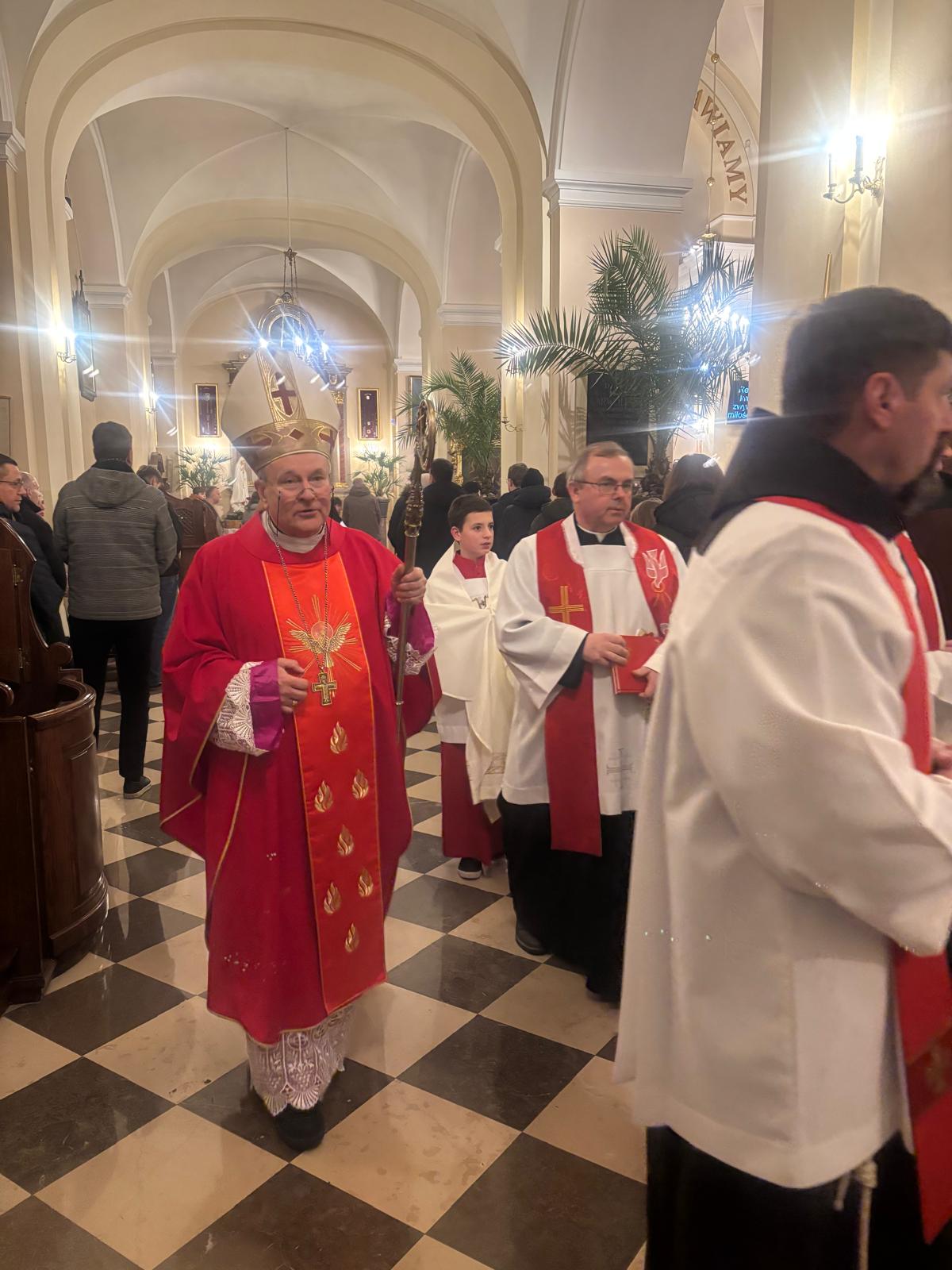 W homilii padło też nawiązanie do aktualnie trwającego w Kościele "Roku Nadziei". Bp Michał przywołał scenę z filmu "Rejs", w której jedna z postaci była zmuszona zmienić słowa piosenki: "...i choć przyjdzie zginąć w ojczystej potrzebie, nie rozpaczaj dziewczę - spotkamy się w niebie" na wersję bez odwołań do wiary. Ostateczna wersja brzmiała więc: "...i choć przyjdzie zginąć w ojczystej potrzebie, nie rozpaczaj dziewczę - spotkamy się w grobie". Początkowo luźny ton odczuwalny podczas odwoływania się do "Rejsu" dość szybko przerodził się w głęboką refleksję nad tym, że życie człowieka bez nadziei - zwłaszcza tej chrześcijańskiej, która nie jest naiwnością, ale zaufaniem Bogu - jest w dłuższej perspektywie puste i w pewnym sensie bezowocne: "bez wiary czeka nas tylko śmierć". Bardzo poruszająca była myśl o tym, że szeroko rozumiany świat może się śmiać z ludzi pokładających nadzieję w Bogu... ale "jest to śmiech nad przepaścią". Te mocne słowa mogą być jednak orzeźwieniem lub nawet otrzeźwieniem, zwłaszcza dla kogoś, kto wchodzi w dorosłość i żyje w świecie pełnym pokus. Bp Michał zakończył jednak słowami pocieszenia, że o ile szatan jest naszym oskarżycielem, to Duch Święty - którego dary otrzymujemy już na chrzcie świętym, a potem w ich całej pełni podczas bierzmowania - jest dla każdego z nas Pocieszycielem i Obrońcą.