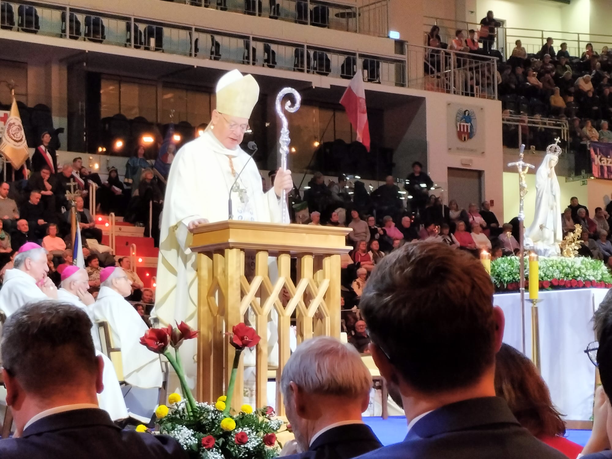 Skupienie jakie zapanowało na hali o godzinie 15:00 przy wspólnym odmawianiu Koronki do Miłosierdzia Bożego, pozwoliło nam na wyciszenie i duchowe przygotowanie do uroczystej Mszy Świętej pod przewodnictwem Jego Eminencji Ks. kard. Gerharda Müllera, byłego Prefekta Kongregacji Nauki Wiary.