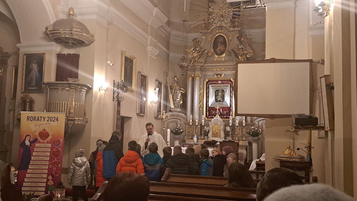 Roratom przyświecało w tym roku hasło: PEŁNI NADZIEI i tą nadzieją napełniał nas Pan Bóg, nasi Patronowie adwentowi oraz najmłodsi, którzy jak co roku z zapałem uczestniczyli w Godzinkach o Niepokalanym Poczęciu Najświętszej Maryi Panny oraz Eucharystii, a potem biegli na wytęsknione śniadanie. Figura Maryi i w tym roku gościła w rodzinach, które zaprosiły Ją przez wzięcie udziału w losowaniu bombek z dobrymi uczynkami. Dodatkową atrakcją stały się sobotnie roraty dla najmłodszych o godz. 8.00 z quizem i wspaniałymi nagrodami, którego pomysłodawcą był Ks. Proboszcz Robert Tomasik.