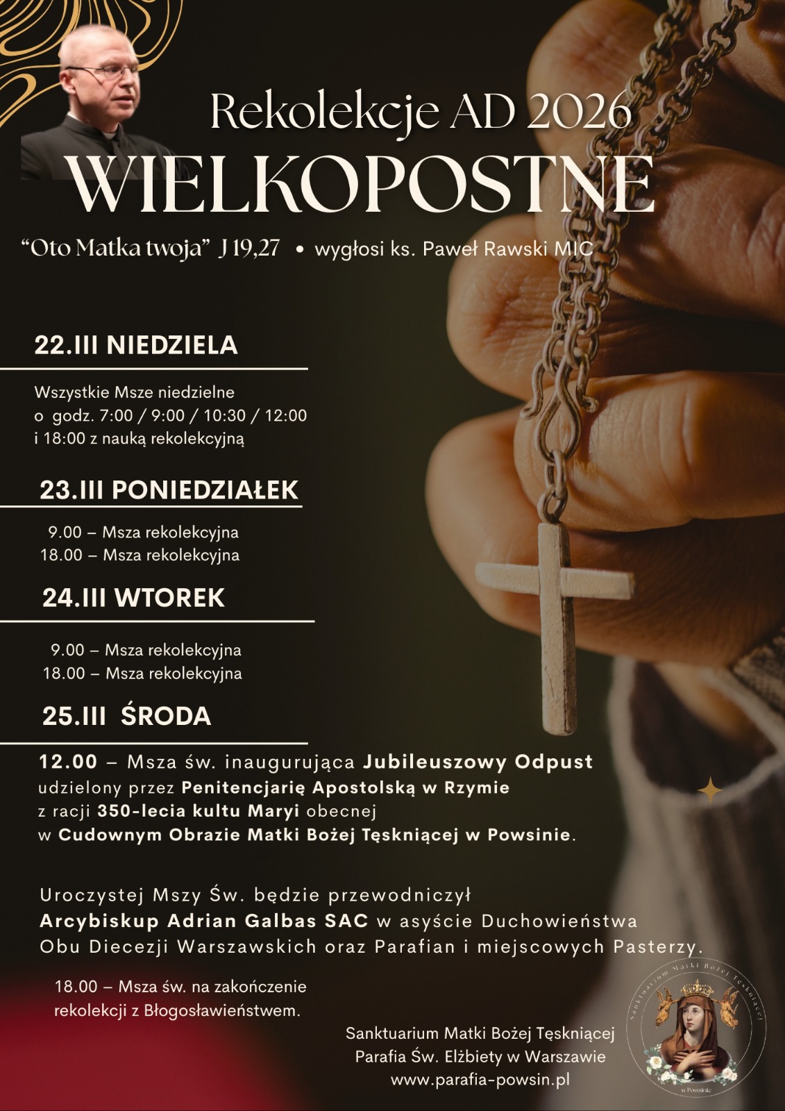 - Ostatnie dni przyniosły nam wielką radość. Jest nam niezmiernie miło poinformować, że zgodnie z naszą prośbą przekazaną do Rzymu – potwierdzoną osobistym wstawiennictwem naszego Ordynariusza Ks. Arcybiskupa Adriana Galbasa SAC – Watykańska Penitencjaria Apostolska udzieliła wyjątkowego przywileju mieszkańcom Parafii św. Elżbiety Węgierskiej w Powsinie oraz wszystkim pielgrzymom odwiedzającym nasze Sanktuarium. Ten przywilej to trwający przez cały Rok 2026 Jubileuszowy Odpust. Jest on związany